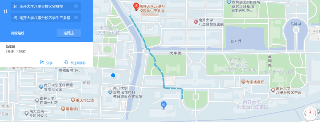 南开大学八里台校区省身楼→南开大学八里台校区学生第三食堂