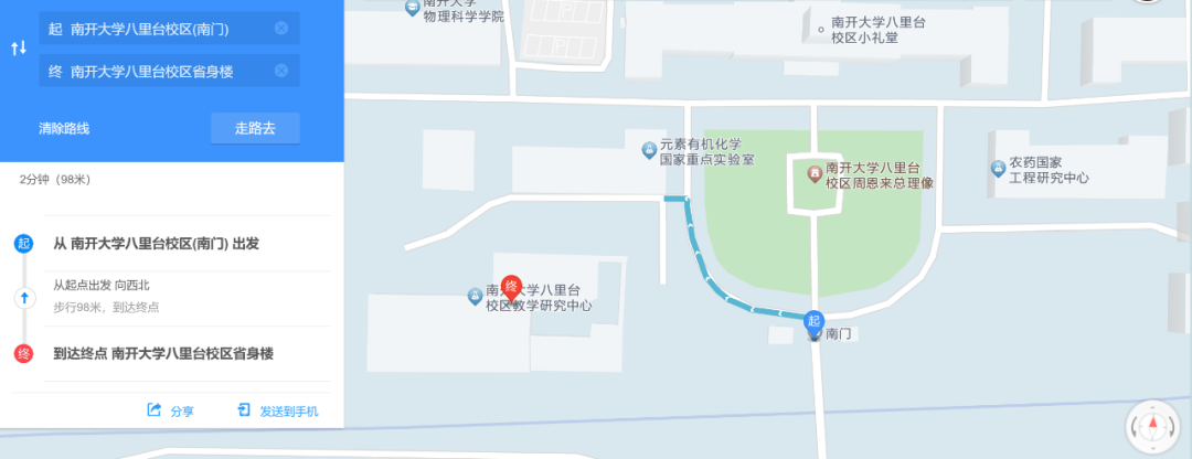 南开大学八里台校区南门→南开大学八里台校区省身楼