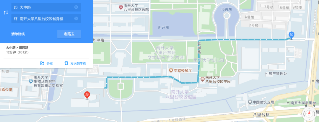 南开大学八里台校区东门→南开大学八里台校区省身楼