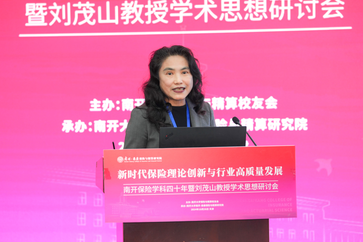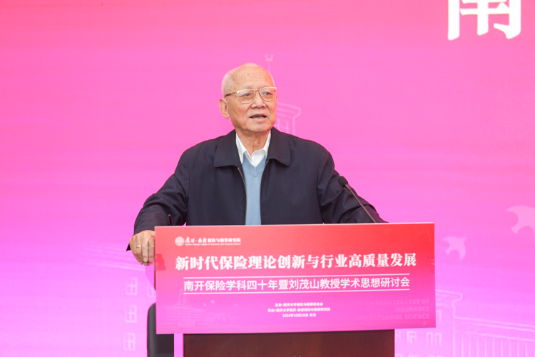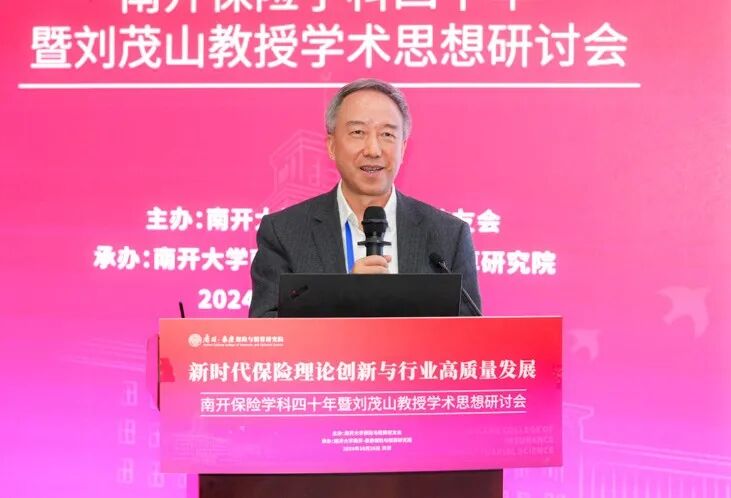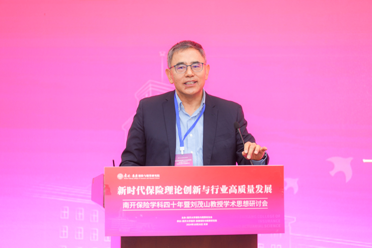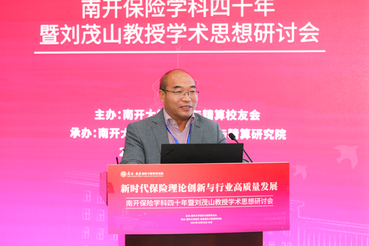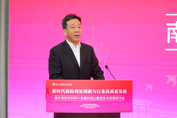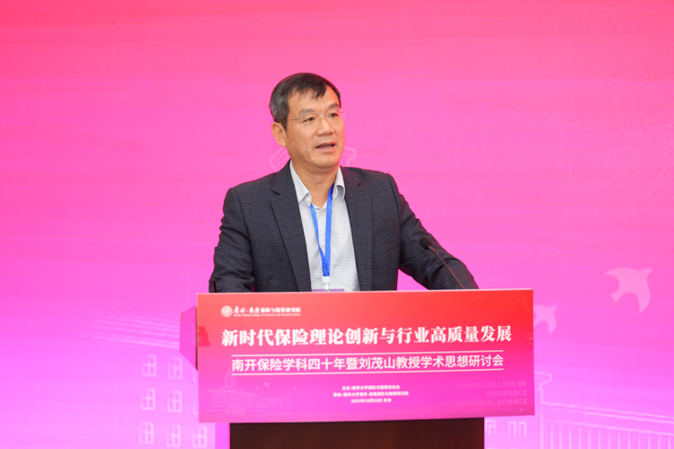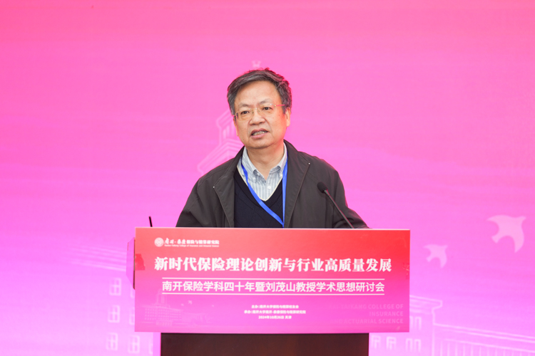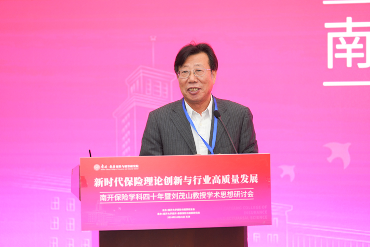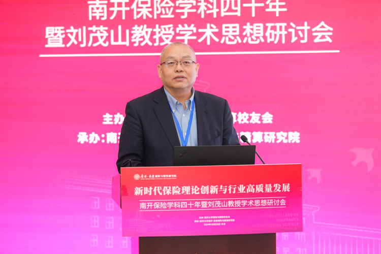 杨庆山在致辞中表示,南开大学是全国最早设立保险专业的高等院校之一,开创了中国精算教育与精算专业的先河。四十年来,南开保险与精算学科始终站在引领推动保险和精算教育开拓创新的最前沿,学科发展取得累累硕果,为中国乃至世界保险业培养了一大批优秀的专业人才,在各领域发挥了中流砥柱的作用。我们在这里研讨学科奠基人刘茂山教授的学术思想,不仅是对前辈的致敬,更是为了汲取智慧、启迪未来。希望南开保险精算能够把握新机遇,用好新平台,站上新高度继续秉承前瞻视野与探索精神,深层次聚焦前沿问题,多渠道引进高端师资,全方位打造人才培养高地,为服务国家战略需要和行业健康发展贡献更多南开力量。学校将会一如既往地全力支持学科的建设发展,助力学科再攀高峰。