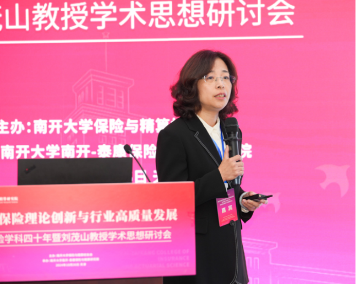赵春梅在发言中介绍了刘茂山教授在社会经济保障学领域的重要贡献。她表示,老师早在1992年便提出了“经济保障系统工程”这一重要概念,突破了传统保险的局限,将保险纳入了宏观经济的范畴,并展望了保险学科的未来发展,预示着可能出现新的社会经济保障学学科,具有很强的前瞻性。