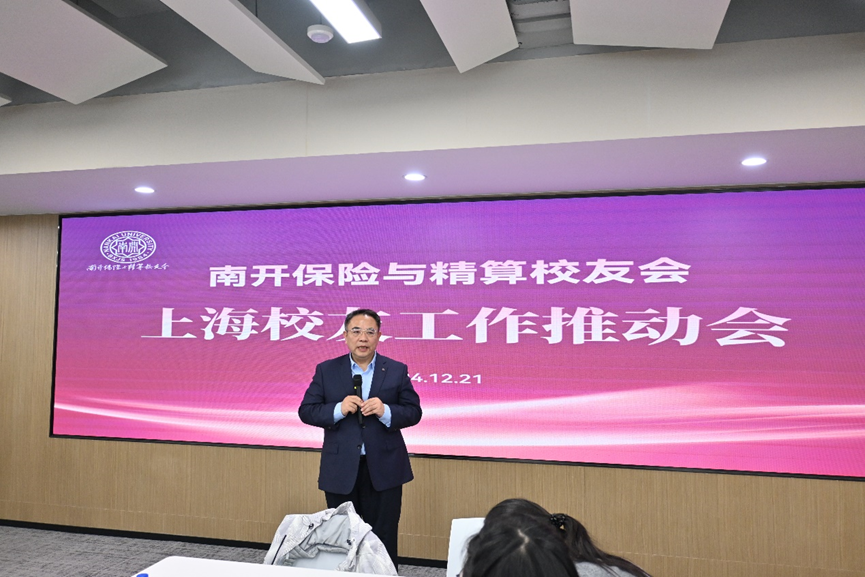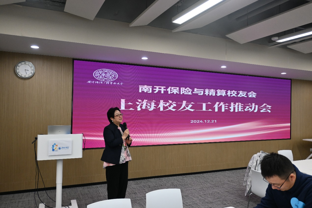 校友会秘书长赵春梅老师首先向全体上海校友转达了学科创始人刘茂山先生对校友们的关心。接着她从创建、发展及2025年的工作重点三个方面为校友们介绍了南开保险与精算校友会。她特别阐述了校友会的宗旨、理念、使命、任务和目标;勉励广大校友要担当起传承刘茂山先生学术思想的历史重任,力争在保险学术上形成南开思想,在行业发展中发出南开声音,为我国保险业的高质量发展贡献南开力量;谈到2025年的工作重点,她将2024年度工作会议报告中的内容用“一、二、三”做了高度概括:“一个目标”即服务并助力把母校的保险与精算学科建设为在新的历史发展时期依然保持国内领先、国际一流;“两条主线”即助力校友个人成长,助力母校学科声誉进一步提升;“三大板块”即平台建设、制度建设和校友活动。
