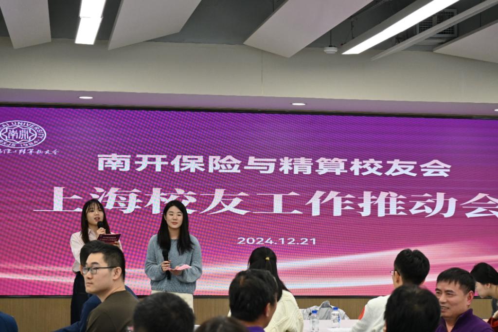 2024年12月21日,南开保险与精算校友会上海校友工作推动会在上海市浦东新区置汇旭辉广场举办。校友会会长黄新平、秘书长赵春梅、常务理事/南开-泰康保险与精算研究院院长李秀芳专程到会,校友会常务理事田鸿榛、朱沙苗,高年级校友代表任广通、吴强、翟金林、曾旭、章静等参加会议,校友会副秘书长胡宇晓主持会议,在沪校友100余人欢聚一堂,共议发展。