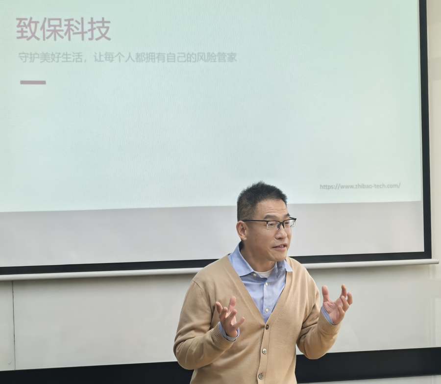 1991级硕士任广通校友首先分享了致保科技的发展历程及其独特的“科技+保险经纪”模式,尤其是致保科技在保险行业数字化转型中的引领作用。他介绍,致保科技作为保险经纪行业的先锋,2024年在纳斯达克成功上市,凭借其“科技+保险经纪”的创新模式,推动了行业的数字化转型。致保科技为B端客户(如互联网平台、大中型企业和政府机构)提供定制化数字化保险解决方案,同时也为C端客户提供优质服务,尤其在健康险领域,凭借丰富经验成为行业的重要力量。在内嵌式2B2C保险商业模式探讨中,致保科技专家深入分析了这一模式的优势及应用场景。从致保科技的商业洞察和主要服务客群,到其在保险产品选择与供给、业务流程优化、数据分析与风控、客户运营等方面培育的核心能力,以及目前落地的如惠民保、惠家保等项目的解决方案,深入细致的分析让与会校友获益匪浅。就此,校友们积极参与讨论了全球InsuTech保险科技创新趋势及其对保险业未来发展的影响。 “潮平两岸阔,风正一帆悬”,任广通鼓励校友们特别是年轻校友勇于走出去,关注新机遇,积极探索创业之路。
