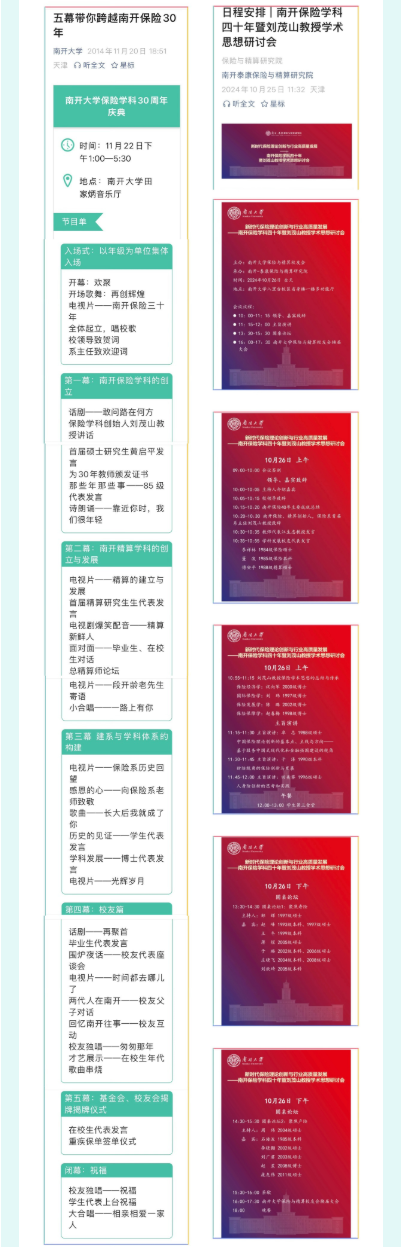 时光为尺,刻录下每一个坚实的脚印;岁月为笔,书写着一部壮阔的成长史诗。今天,当我们试图回溯母校保险与精算学科那段激情燃烧的岁月时,两份珍贵的议程,为我们打开了通往过去的两扇大门。