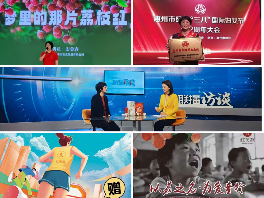 从一颗荔枝到一个产业,宏美春用"公司+合作社+农户"的创新经营模式,书写着乡村振兴的新篇章。如今,"红美荔"已带动200多户果农共同致富,其中30多位农村妇女在家门口实现了就业增收,户均年收入提升超万元。与此同时,品牌荣誉接踵而至,继“荔枝红茶”在2017年全国茶博会上一举斩获金奖,2020年斩获惠州手信五十强及最佳包装设计奖,公司荣获惠州市惠阳区农业产业化龙头企业;2021年荣获惠州市惠阳区巾帼创业示范基地、全球品牌策划大赛中国地区选拔赛优秀企业称号;2022年荣膺惠州市巾帼创业基地称号,同年初丹桂味和糯米糍荔枝产品通过国家绿色食品认证;2023年荔枝干更是在第十二届广东现代农业博览会上一举夺金,其荔枝园荣获“示范果园”称号。年产值突破300万元的"红美荔",已成为惠州特色手信的亮丽名片。事业有成的宏美春始终不忘回馈社会,开展了“以荔之名,为爱童行”困境儿童关爱慰问活动,助力马拉松赛事活动,举办与村党支部结对共建主题党日活动等,力所能及地履行着一个企业家的社会责任。