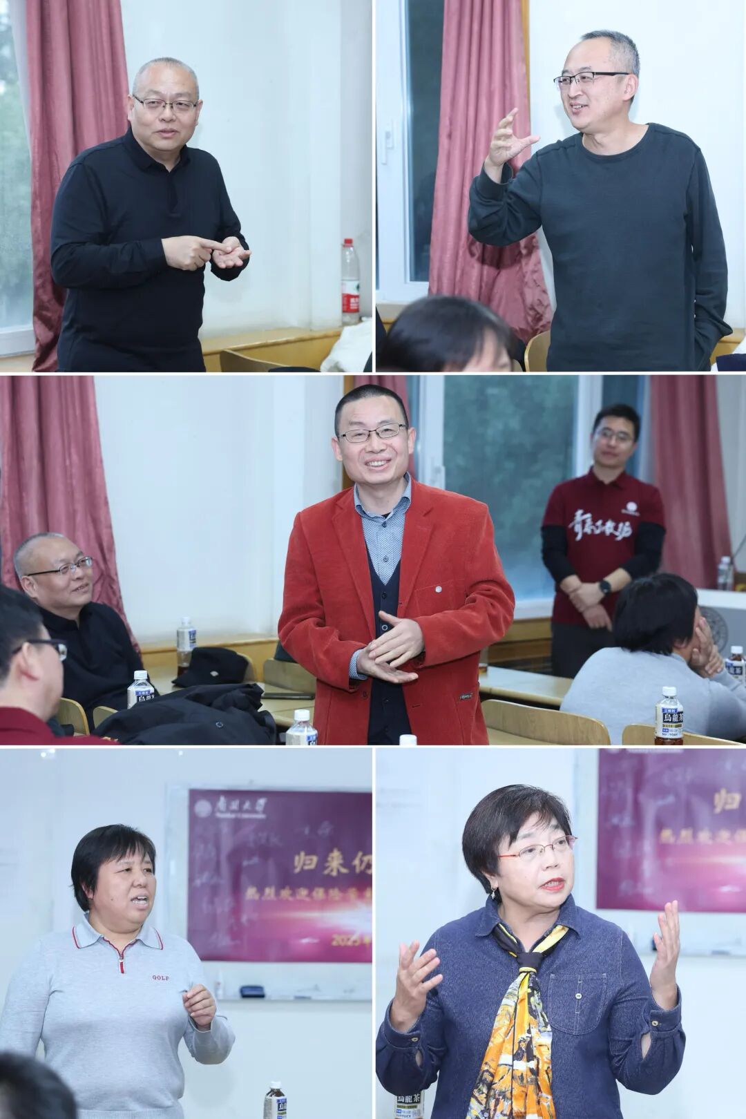 在熟悉的方楼202教室,一场温馨而热烈的师生座谈会就此展开。在祝向军老师的提议下,同学们以“我很幸福”为主题,依次向老师们汇报了各自20年来的工作生活与人生感悟,言辞恳切,满是感动。