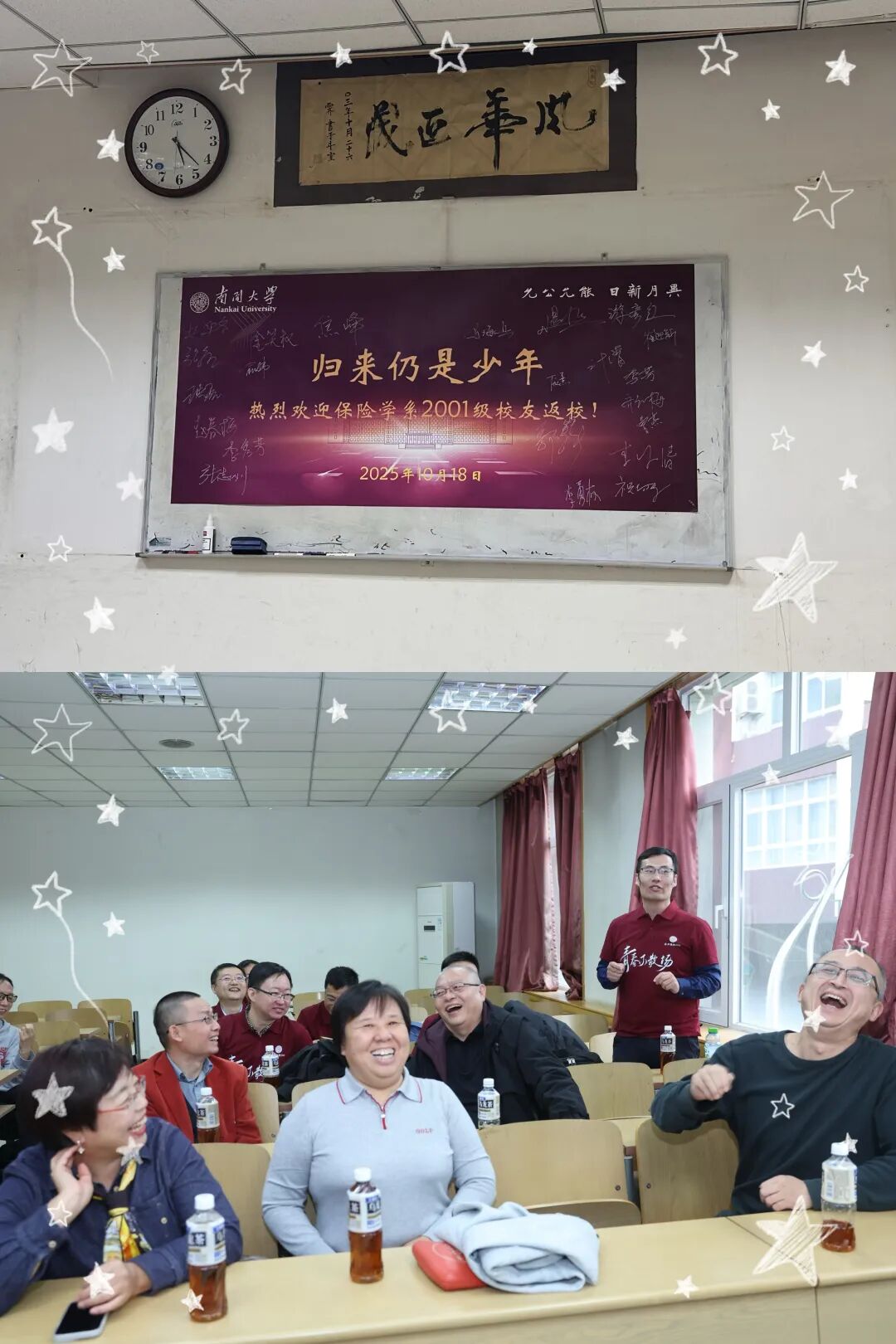 聚是一团火,散是满天星。青春永不散场,未来更加可期。2001级保险本科的同学们虽遍布四海,但 那颗赤诚的“南开红心”永远紧密相连。让我们怀揣这份温暖印记,在各自的航道上坚毅前行,共同照亮南开更加璀璨的明天。