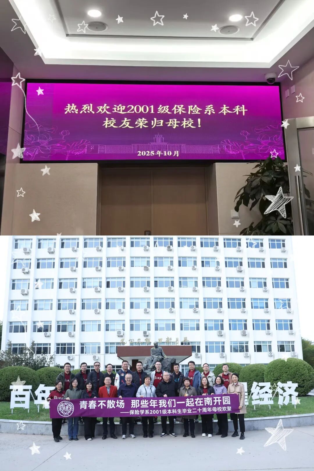金秋十月,南开园里洋溢着温馨与喜悦。适逢母校106周年华诞,2001级保险系近20名本科校友,从大湾区、江浙沪、京津冀等地跨越山海,重返挚爱校园,共叙毕业二十载的深厚母校情、同窗谊。