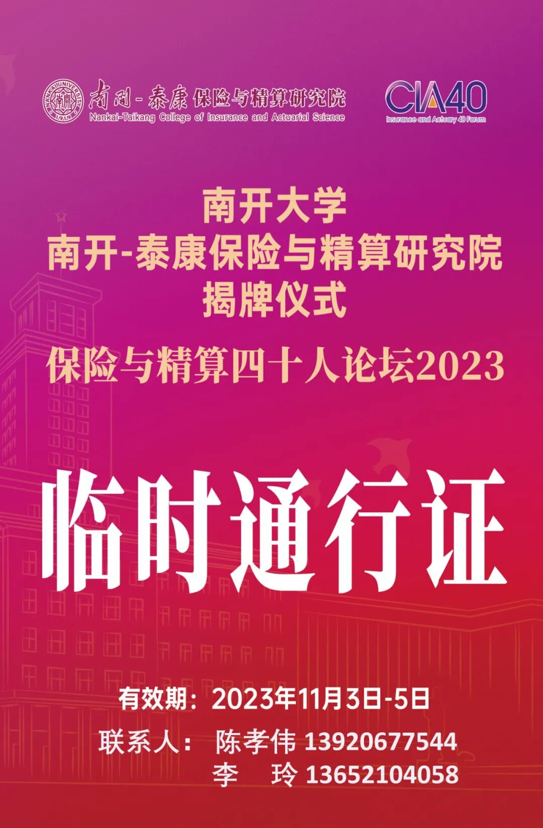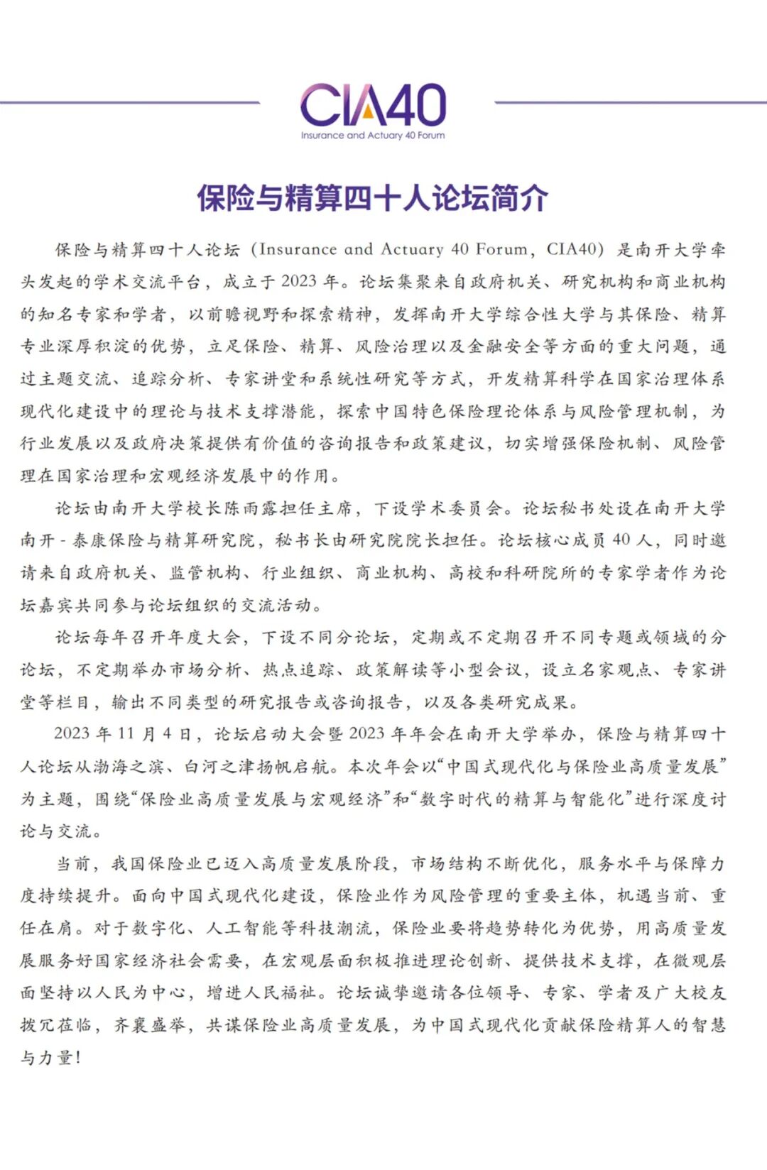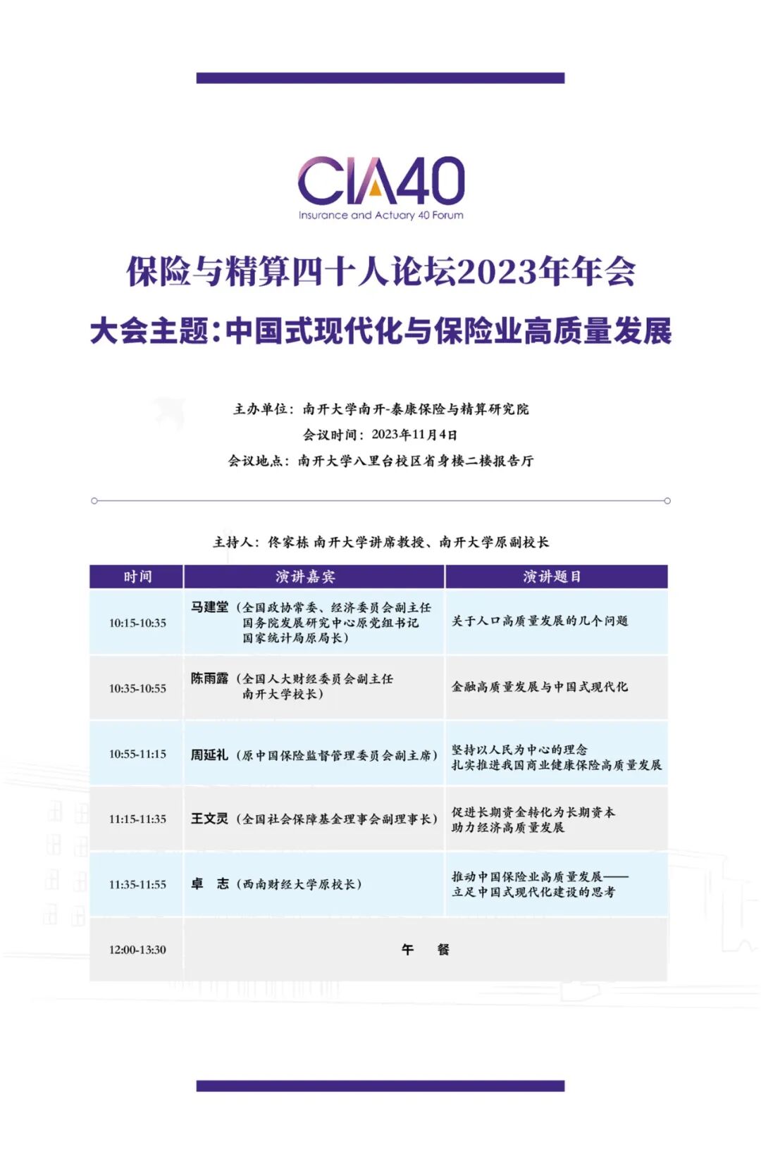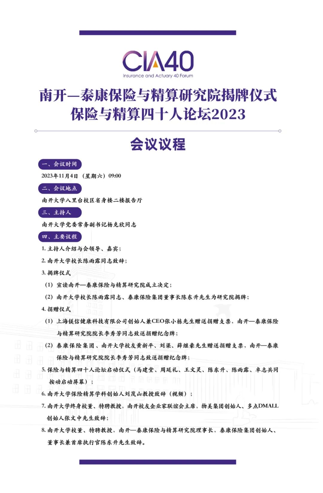会议议程 | 南开大学南开-泰康保险与精算研究院揭牌仪式暨保险与精算四十人论坛2023年年会