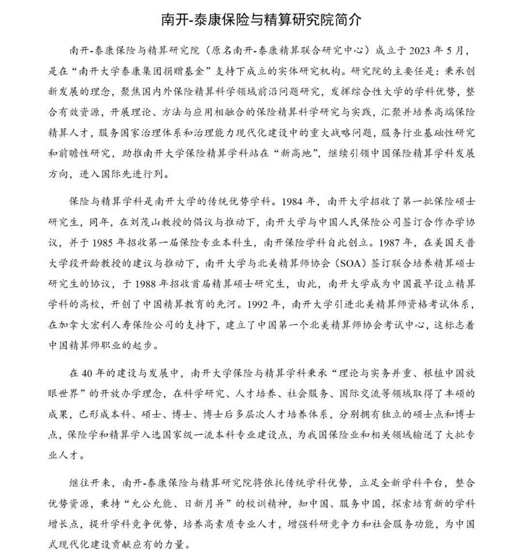 南开大学风险管理与精算研究中心