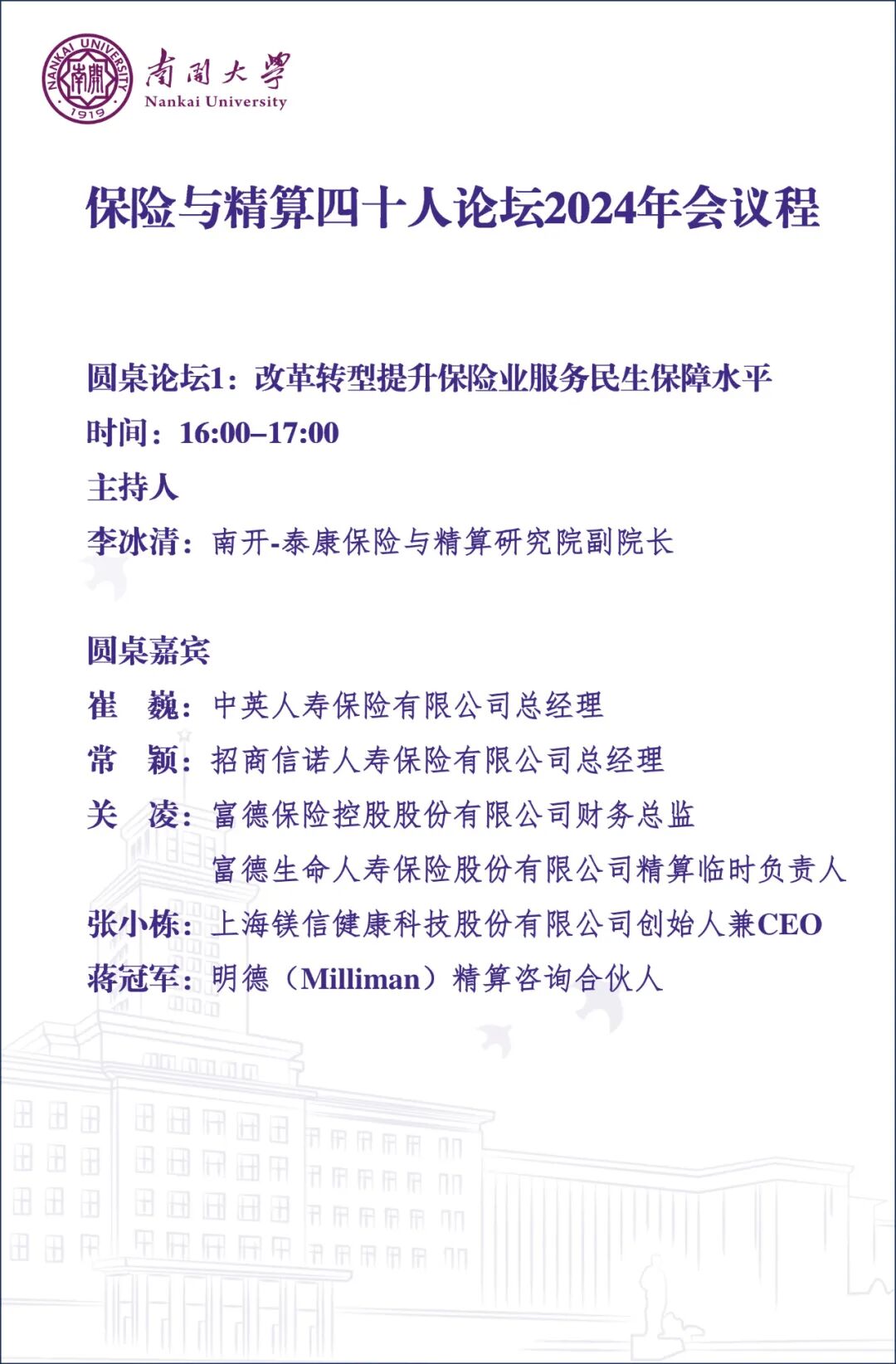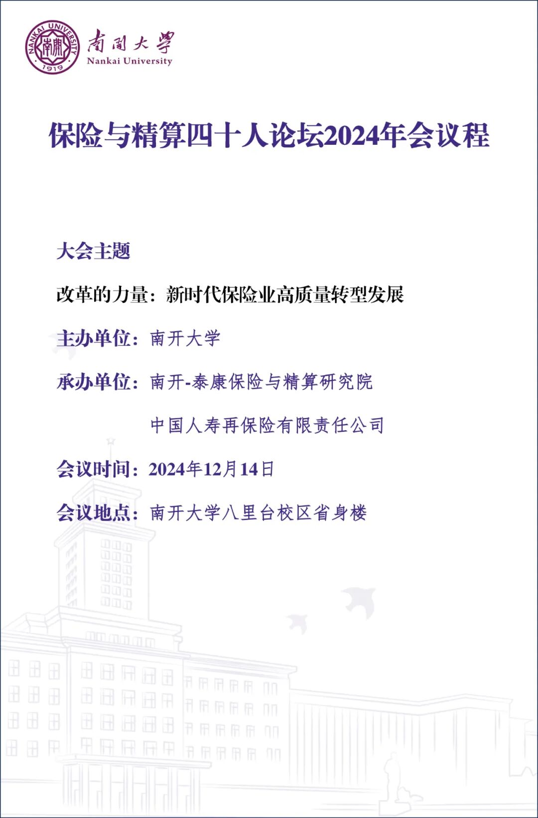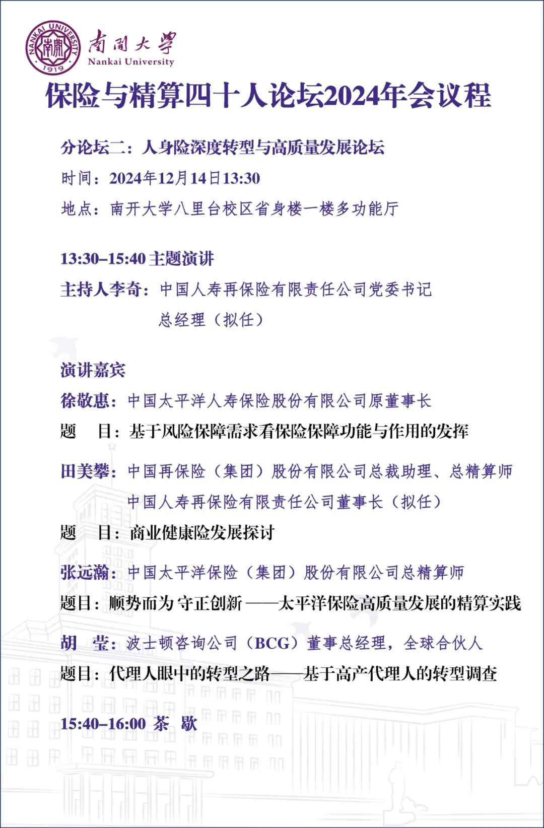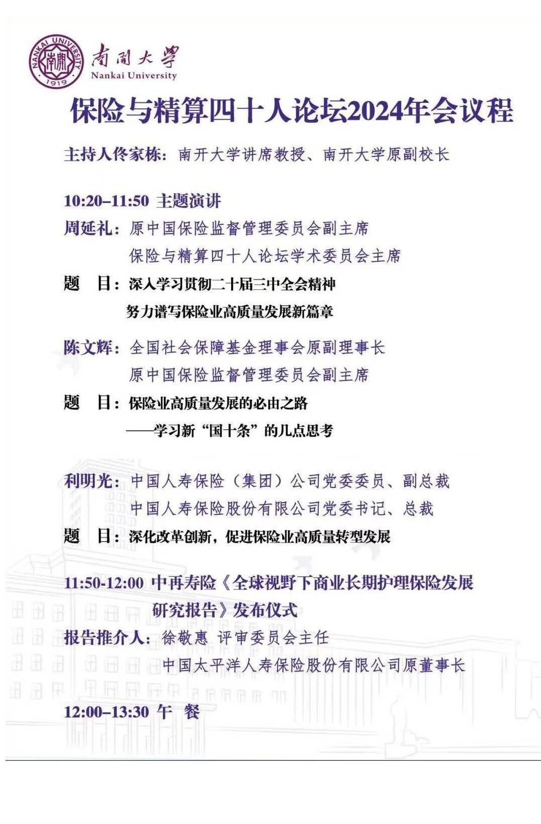 活动预告 | 保险与精算四十人论坛2024年会议程