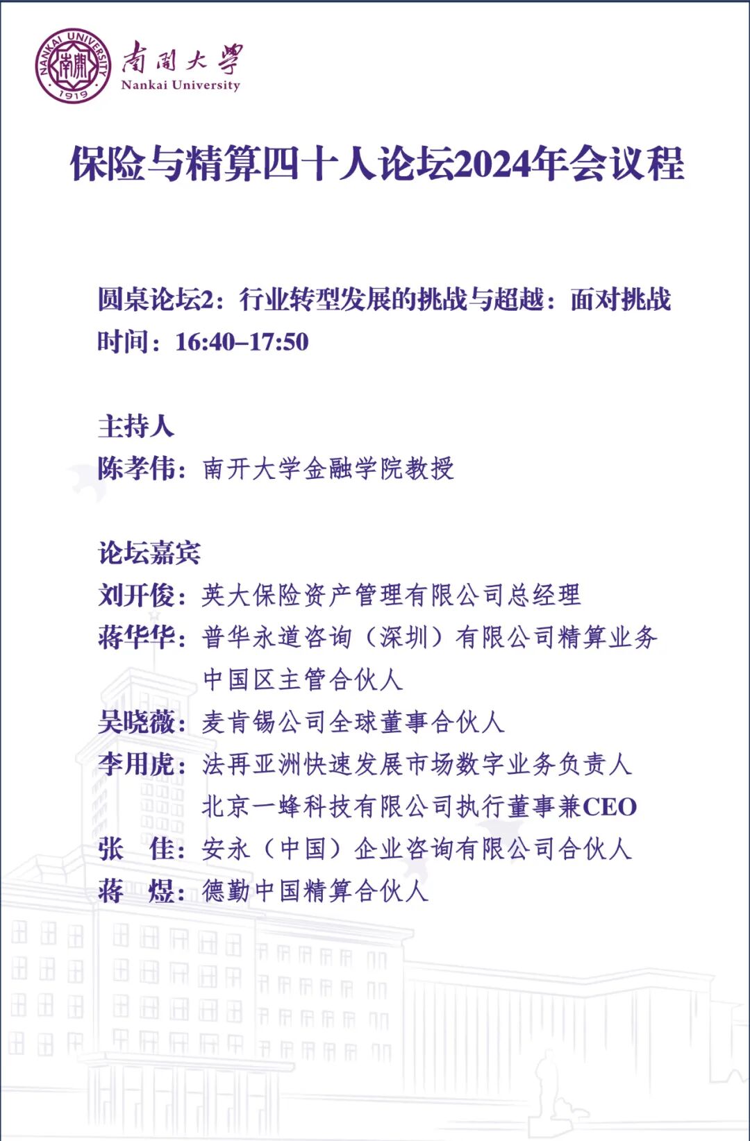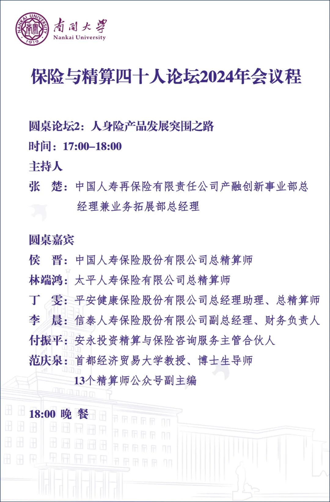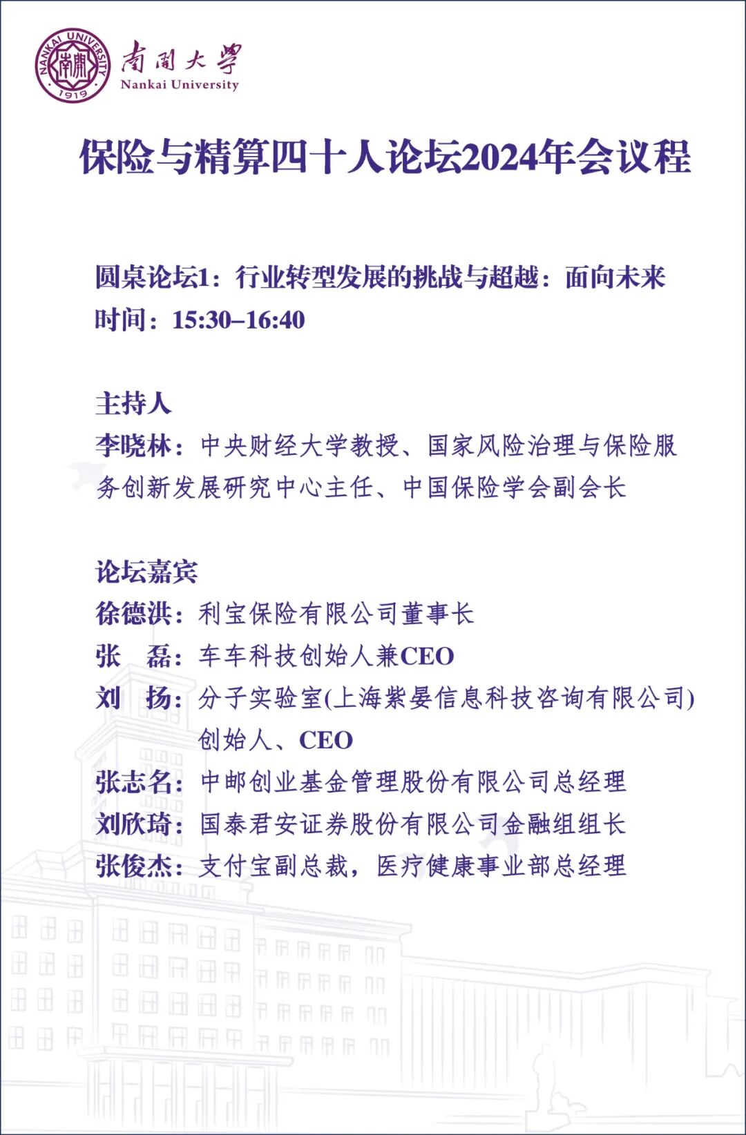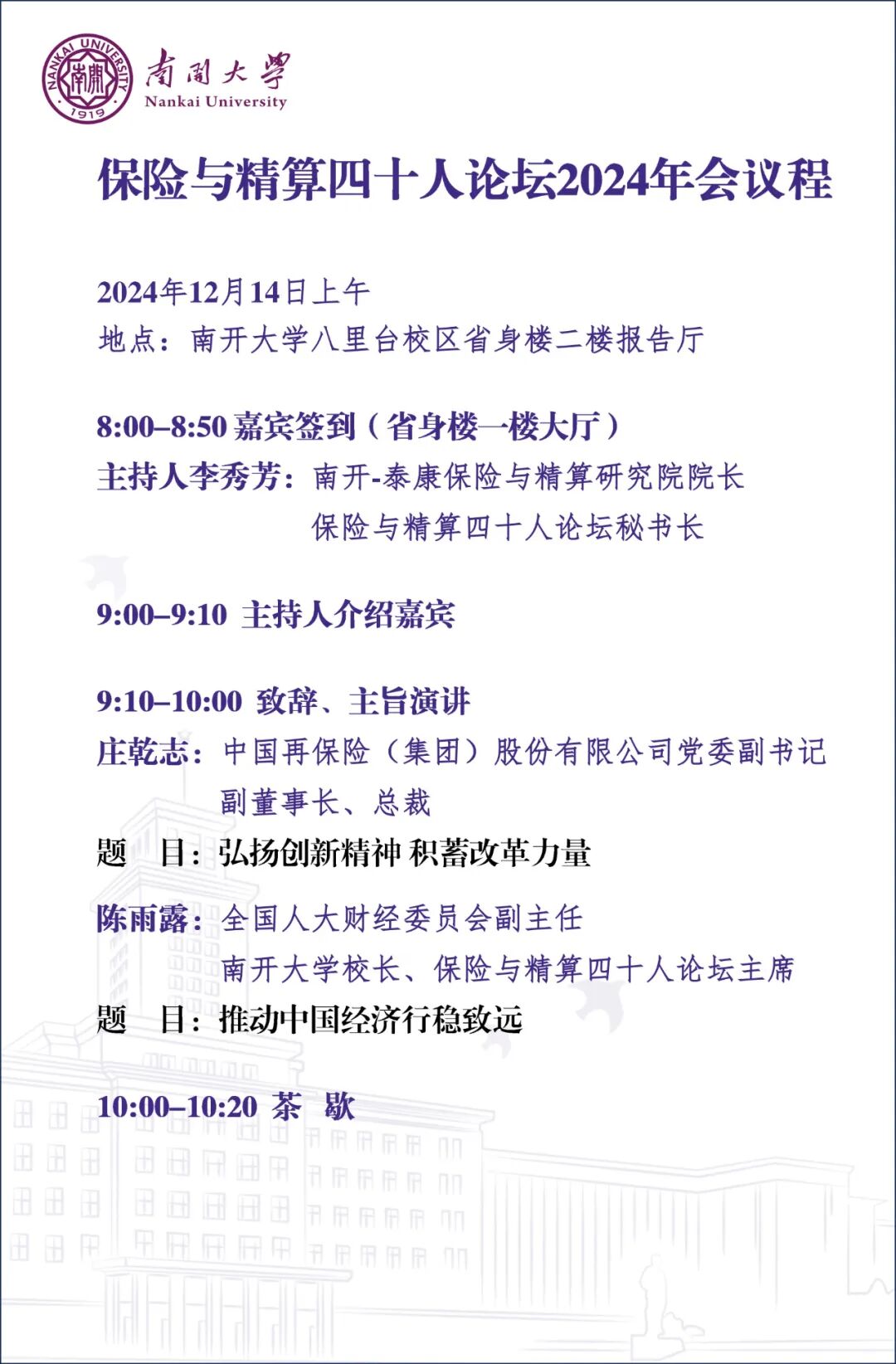 活动预告 | 保险与精算四十人论坛2024年会议程