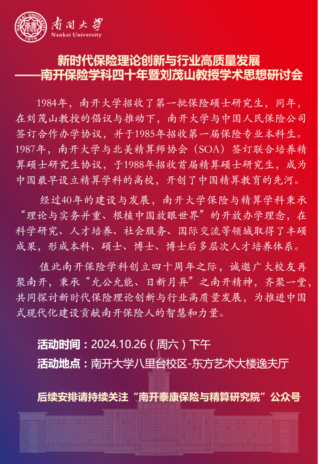 活动预告 | 南开保险学科四十年暨刘茂山教授学术思想研讨会