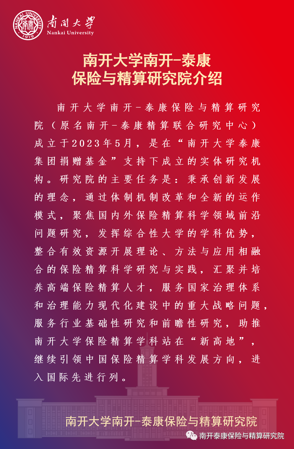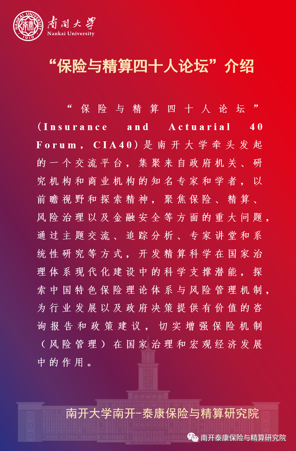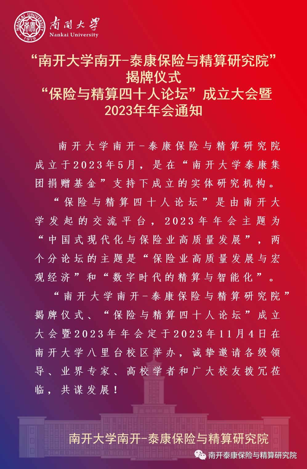 活动预告 | “南开大学南开-泰康保险与精算研究院”揭牌仪式、“保险与精算四十人论坛”成立大会暨2023年年会通知