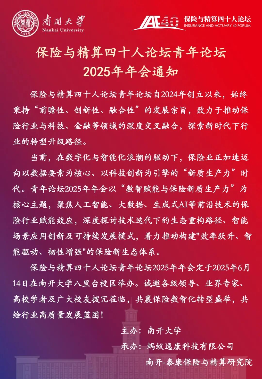 活动预告 | 保险与精算四十人论坛青年论坛2025年年会