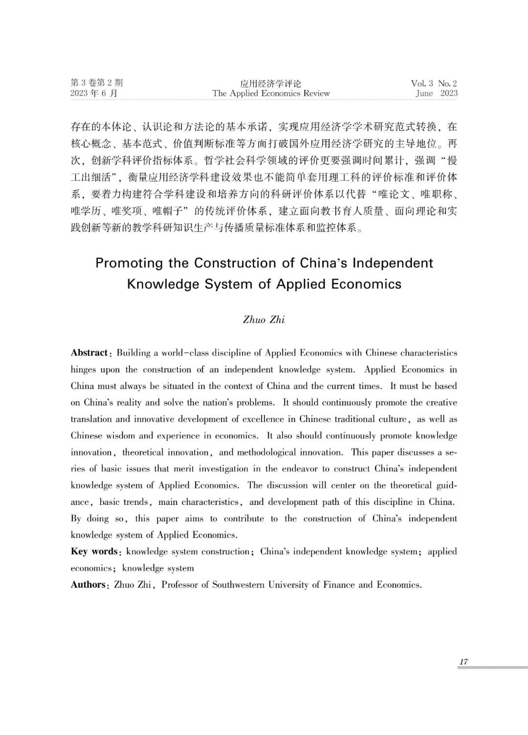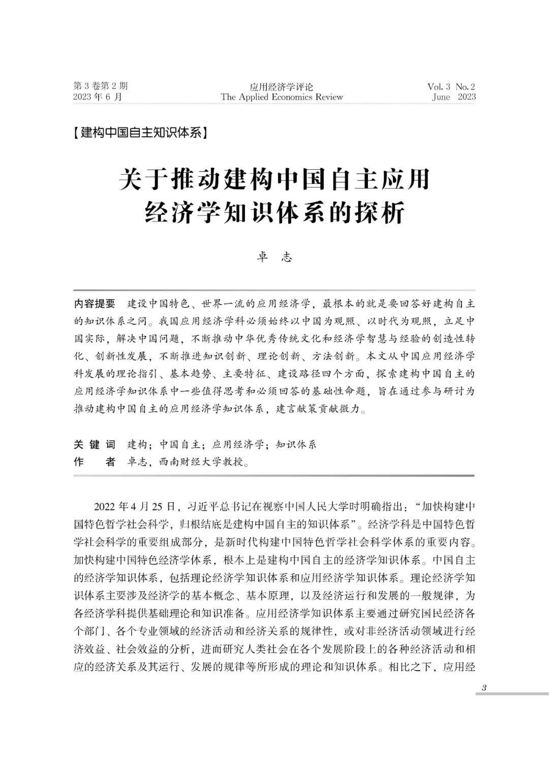 《应用经济学评论》杂志2023年6月刊发原西南财经大学校长、保险与精算四十人论坛学术委员会委员卓志的署名文章《关于推动建构中国自主应用经济学知识体系的探析》。今天我们转载该文章,以飨读者。