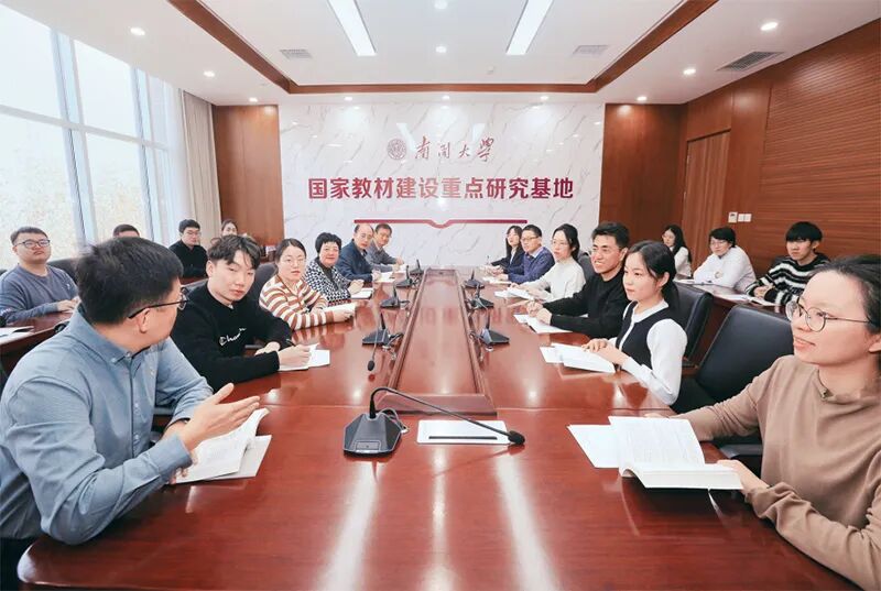 高等学校作为我国哲学社会科学“五路大军”中的重要力量,理应在中国特色哲学社会科学构建中走在前列、干在实处,并为推动高水平哲学社会科学学术成果及时融入教材体系、课程体系、培养体系作出贡献。图为2023年12月5日,南开大学马克思主义学院国家教材建设重点研究基地团队与学生进行研讨。(南开大学供图)