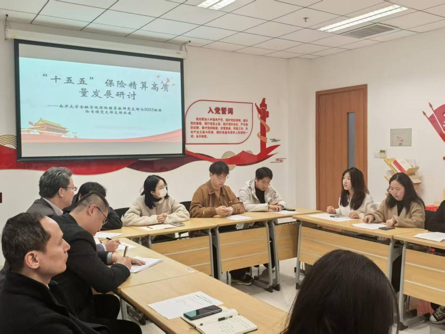 为深入学习贯彻党的二十届四中全会精神,领会“十五五”规划建议的系统谋划与战略部署,坚定理想信念与奋斗方向,2025年11月6日下午,南开大学保险精算教师党支部与2025级保险专硕党支部在学院234教室联合举办共建活动。