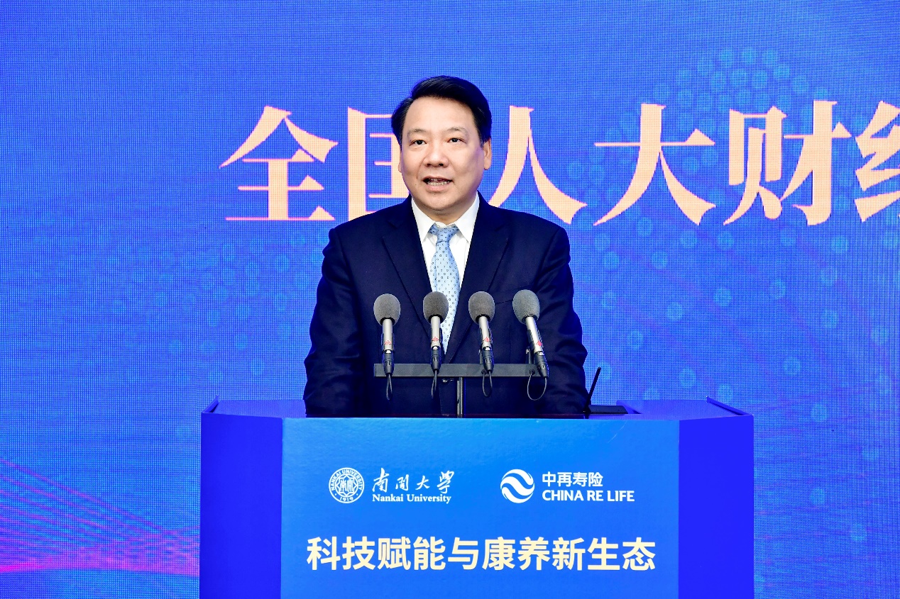 陈雨露在致辞中代表南开大学对保险与精算四十人论坛的召开表示祝贺,对各位嘉宾的光临和长期的支持表示衷心感谢。陈雨露强调,中国经济历经70余年发展积淀,40余年改革开放淬炼,根基扎实、韧性十足。尽管当前面临经济与地缘政治周期叠加的挑战,但在党的领导与中国式现代化发展框架下,必将成功穿越周期,如期实现2035年基本现代化的目标,必将为全体人民带来丰厚的发展红利。他高度肯定“投资于人”的战略价值,指出聚焦人口高质量发展和民生高水平保障,全面加强教育人才、健康社保、就业育儿等领域的投资,是应对工业革命竞争与人口结构变化的关键抓手。针对我国深度老龄化临近、生育率偏低的现状,他肯定论坛“科技赋能与康养新生态”主题的科学性,认为需以科技赋能康养,兼顾老人安置与年轻人发展,为社会可持续发展注入强劲动力。