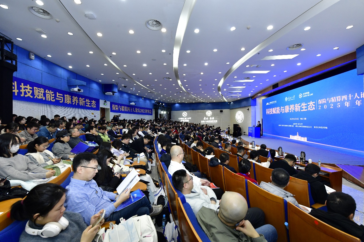 12月20日,由南开大学主办,南开-泰康保险与精算研究院、中国人寿再保险有限责任公司、南开大学经济学院联合承办的保险与精算四十人论坛 2025 年年会在南开大学八里台校区省身楼举行。各界嘉宾聚焦“科技赋能与康养新生态”主题,交流思想、汇聚智慧,共同探索保险与科技、康养、医药产业深度融合的发展新路径。