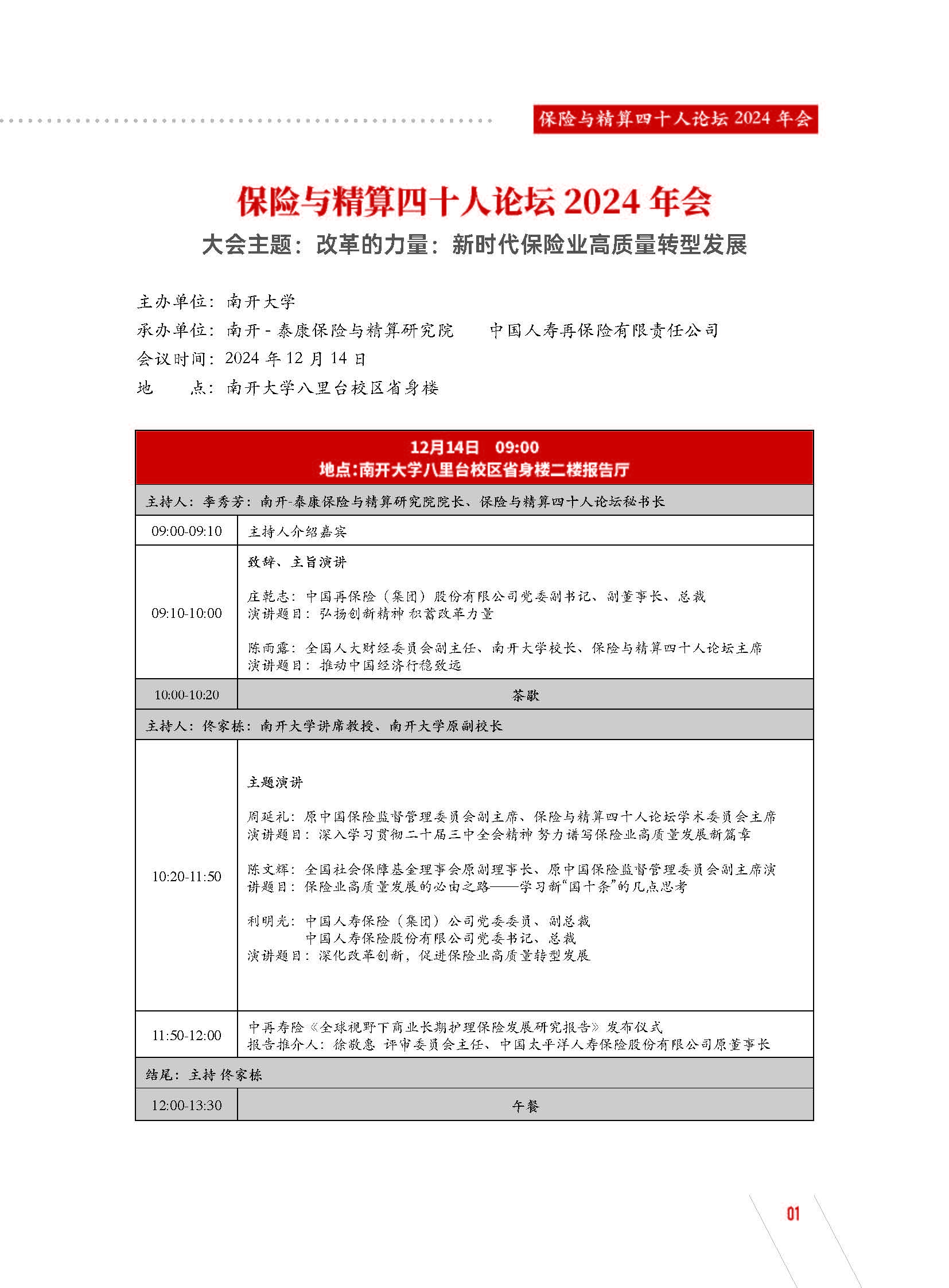 活动预告 | 保险与精算四十人论坛2024年会议程