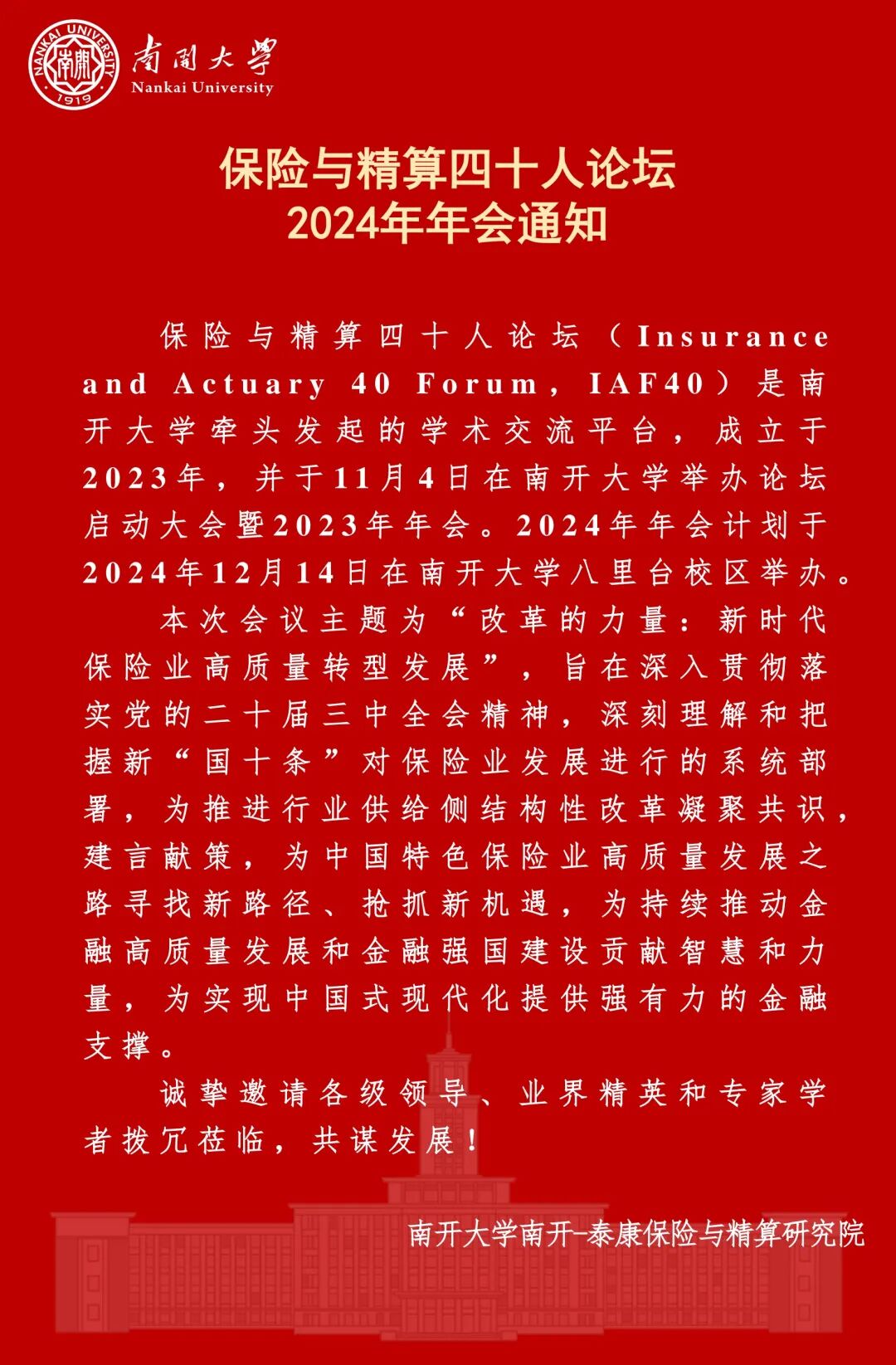 活动预告 | 保险与精算四十人论坛2024年年会