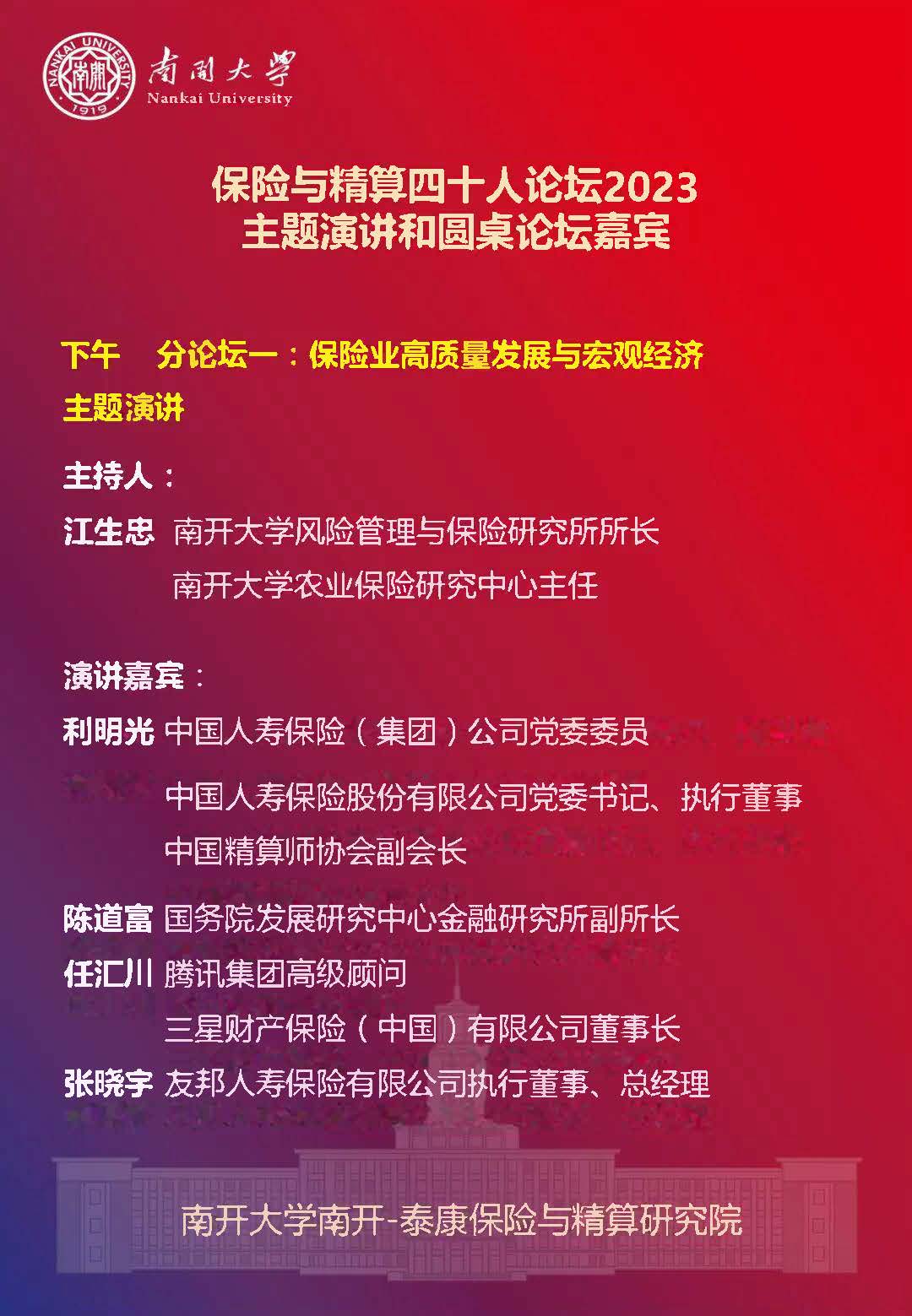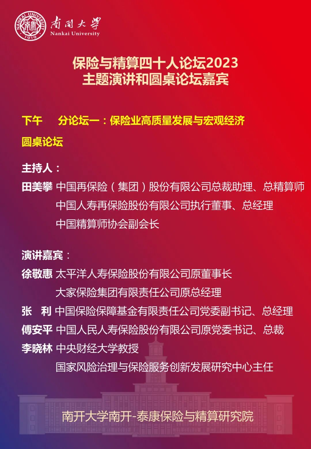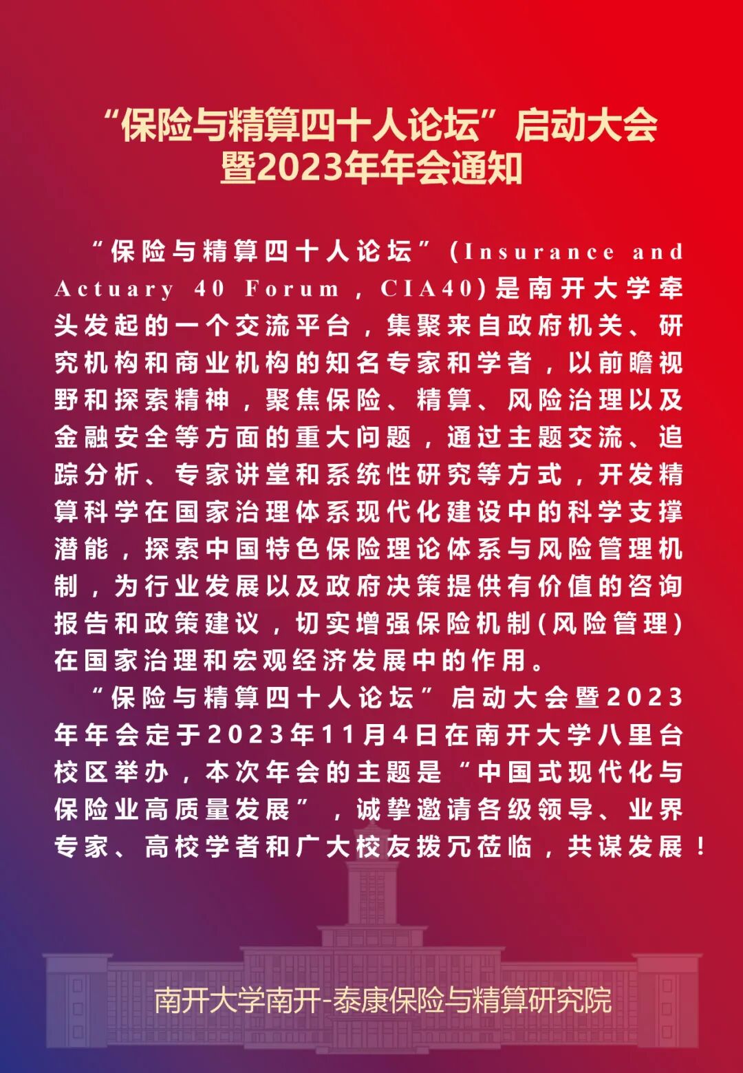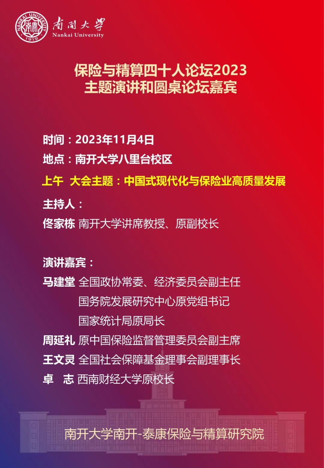 日程安排 | 南开大学南开-泰康保险与精算研究院揭牌仪式暨保险与精算四十人论坛2023年年会